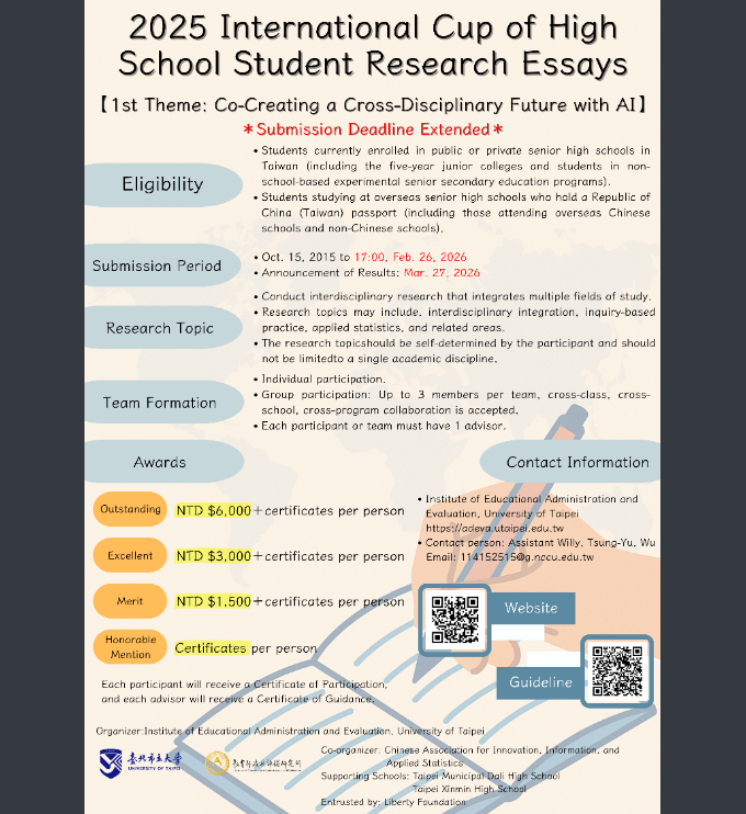 一、原定收件期限因應校務時程調整,延長至115年2月26日(四)17時止。